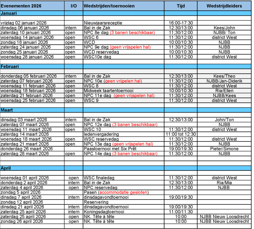 Evenementenkalender 2026 Jan-April
