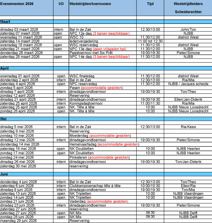 Evenementenkalender 2026 Maart t/m Juni