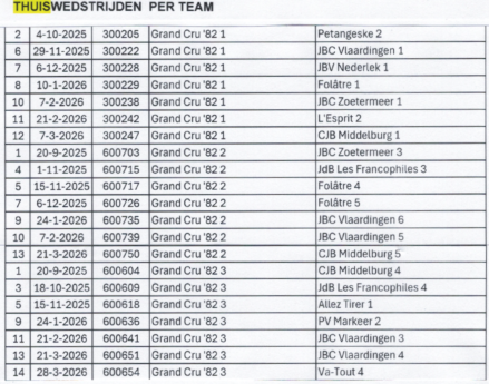 Indeling van de teams en halbezetting bij Grand Cru ‘82 :