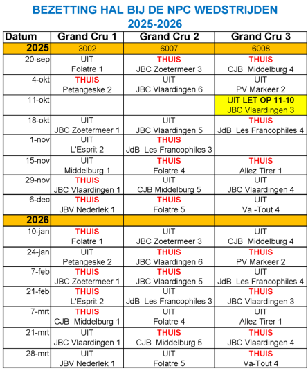 NPC 25/26 lokaties en halbezetting