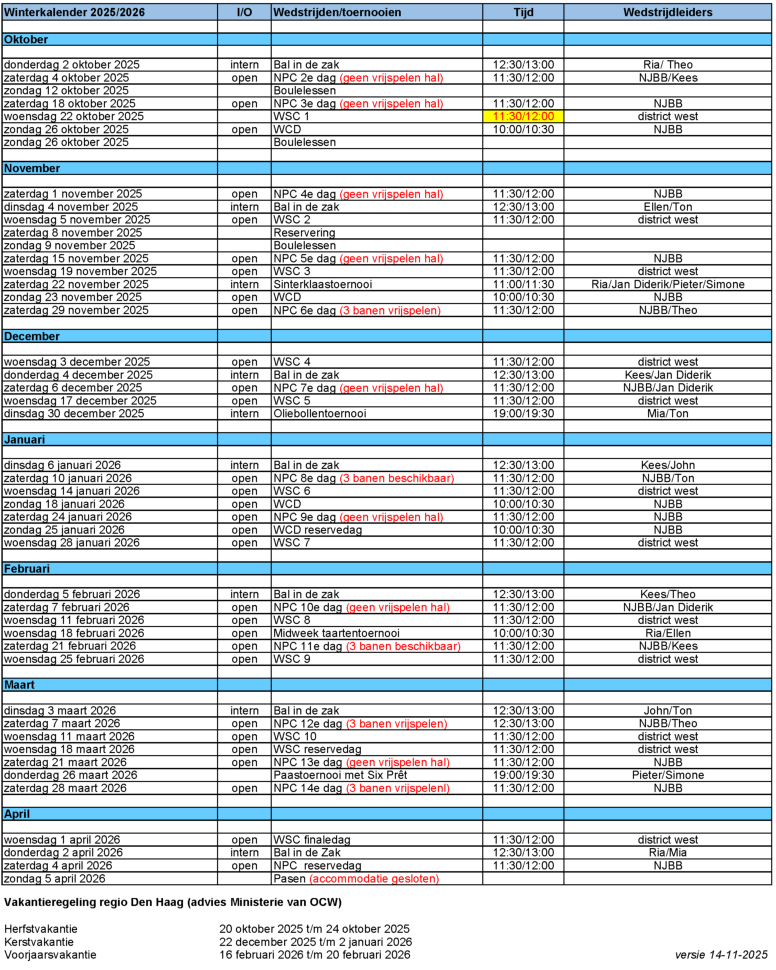 NPC 25/26 lokaties en halbezetting